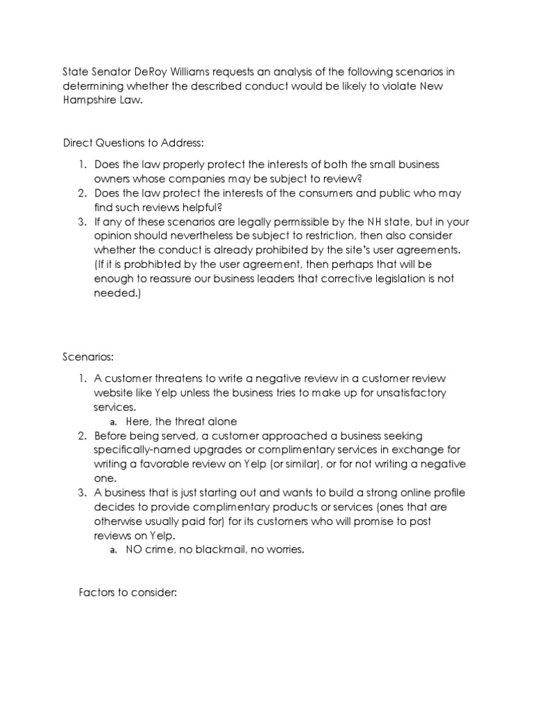 from writing a bad Yelp review) about the unsatisfactory service in exchange for