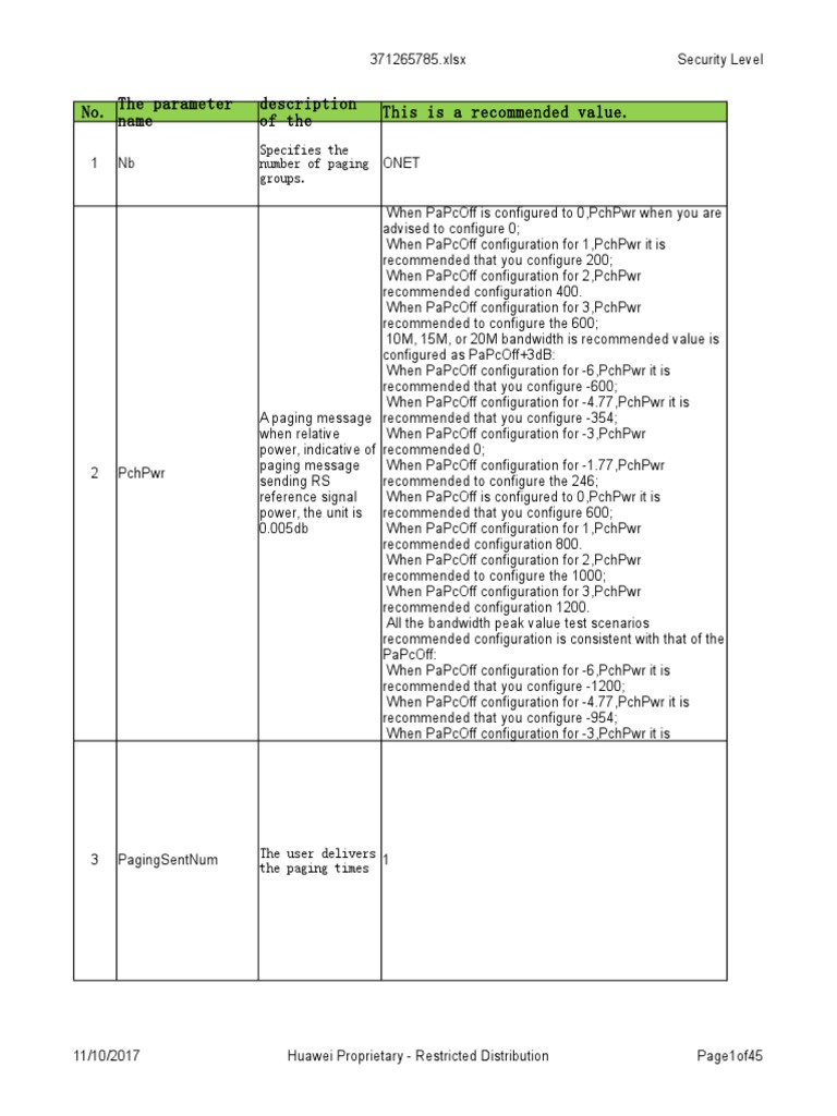 No. The parameter name The description of recommended