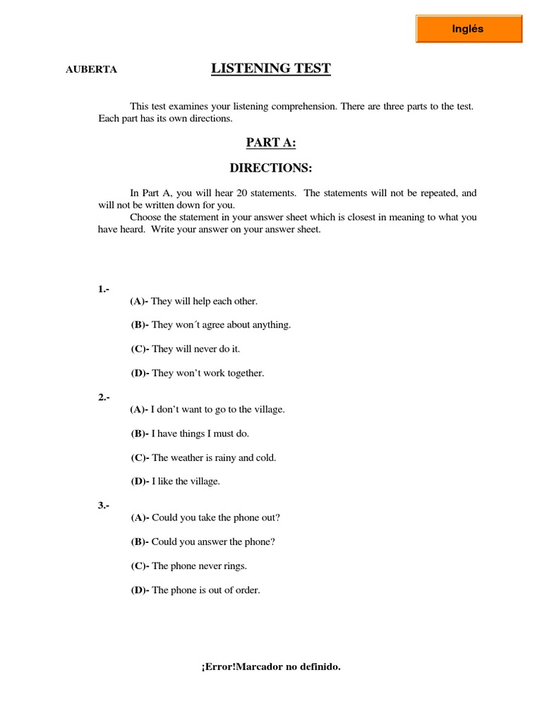 In Part A, you will hear 20 statements. The statements will not be repeated, and