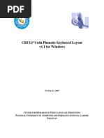 The document provides a phonetic keyboard layout for typing in Urdu. It displays the Urdu alphabet and characters mapped to keys on an English keyboard. Special Urdu characters are accessible by pressing combinations of keys corresponding to their phonetic sounds in Urdu. The layout allows typing Urdu text using an English keyboard interface.
