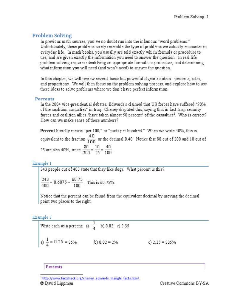 and proportions. We will then focus on the problem solving process, and explore how to use