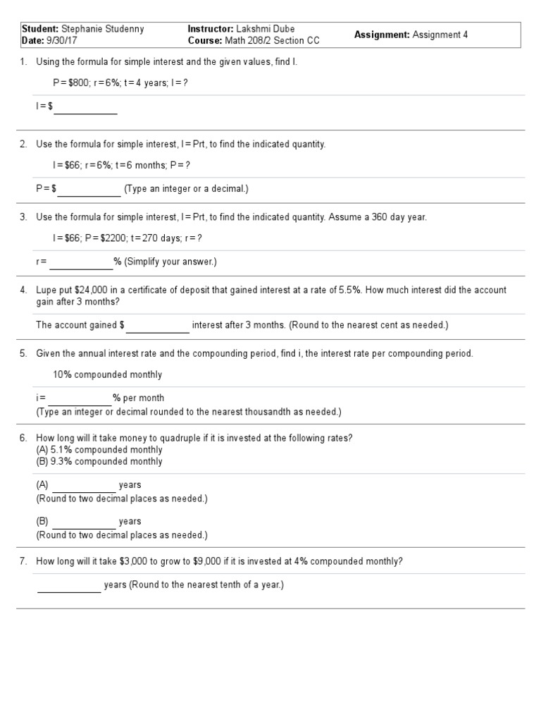 12. Jennifer invested $4,000 in her savings account for 6 years. When she withdrew it, she had $5,208.51. Interest was