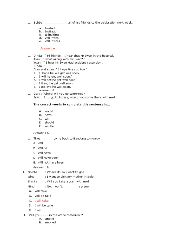 1. Rolland : Hey Alsy! Where will you go on Sunday?