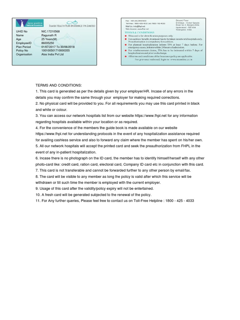10. A fresh card will be generated subjected to the renewal of the policy.