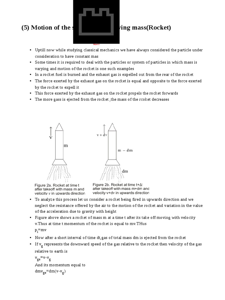 Figure above shows a rocket of mass m at a time t after its take off moving with velocity