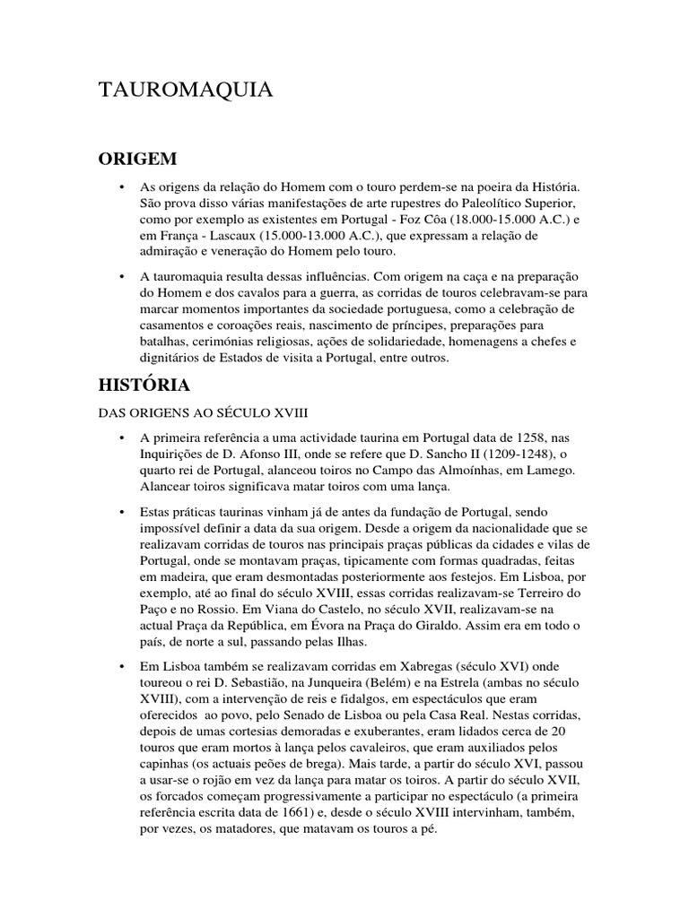 Estas prticas taurinas vinham j de antes da fundao de Portugal, sendo