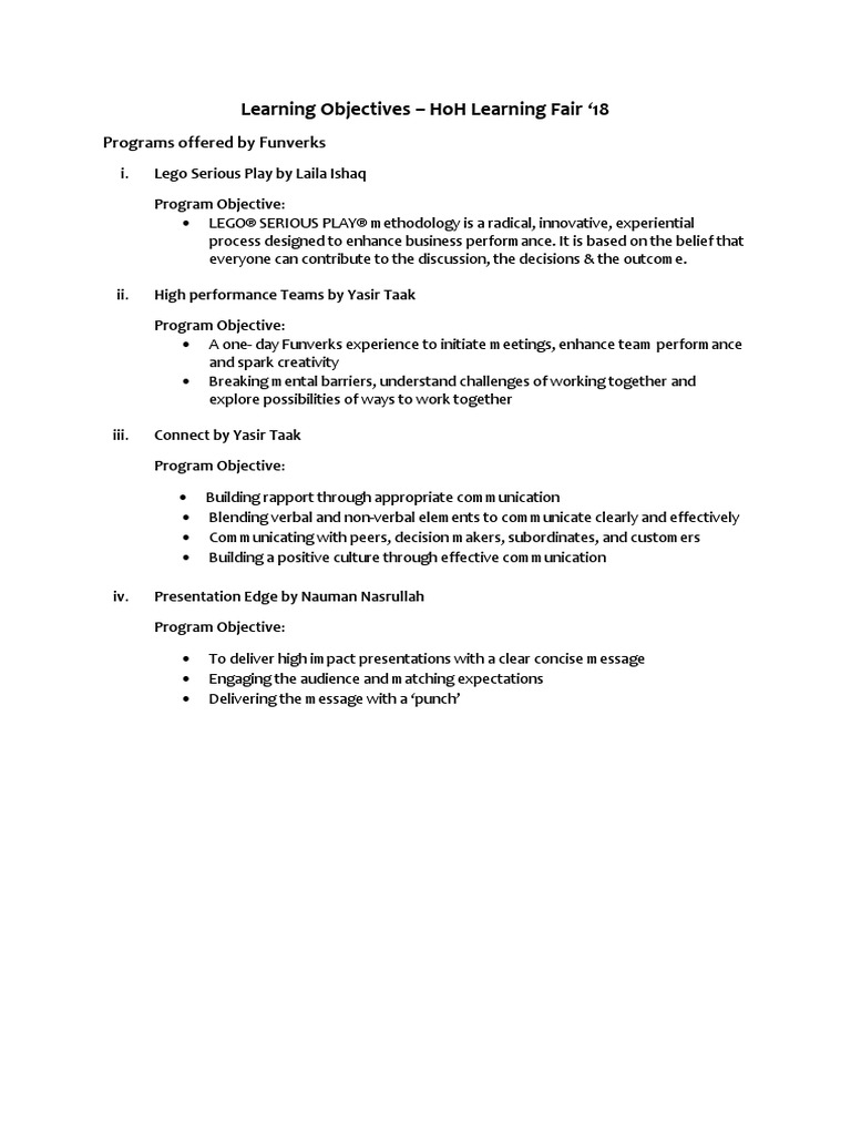 Learning Objectives HoH Learning Fair 18