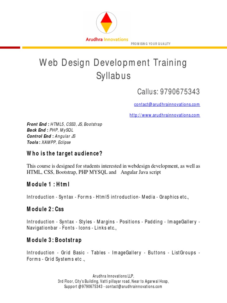 Web Design Devlopment Training Kumbakonam Thanjavur Trichy Syllabus