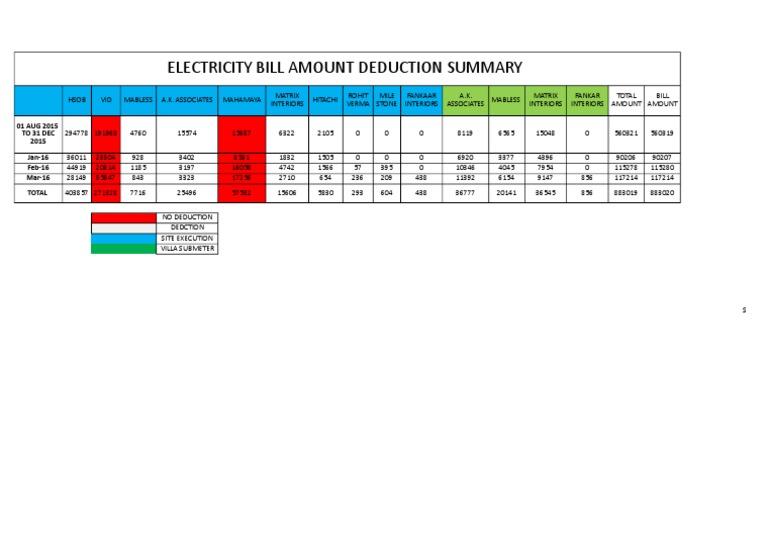 ELECTRICITY BILL AMOUNT DEDUCTION SUMMARY