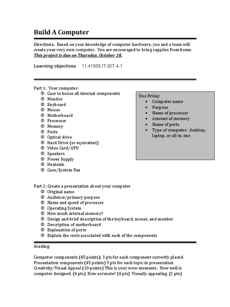 Directions: Based on your knowledge of computer hardware, you and a team will