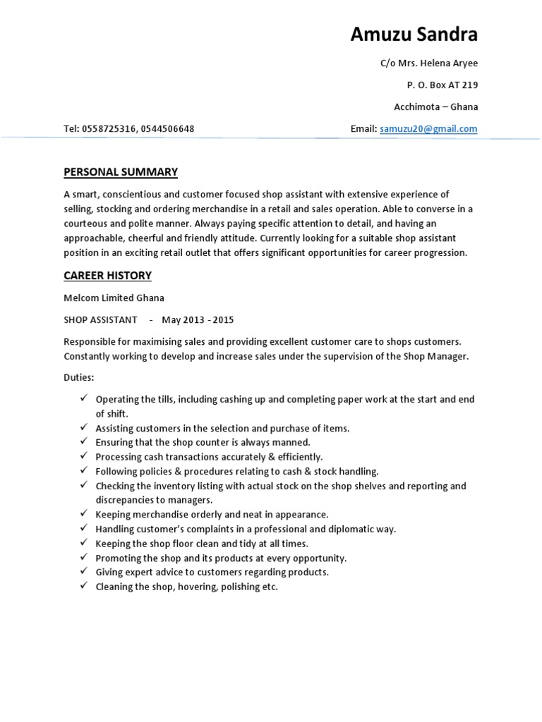 A smart, conscientious and customer focused shop assistant with extensive experience of
