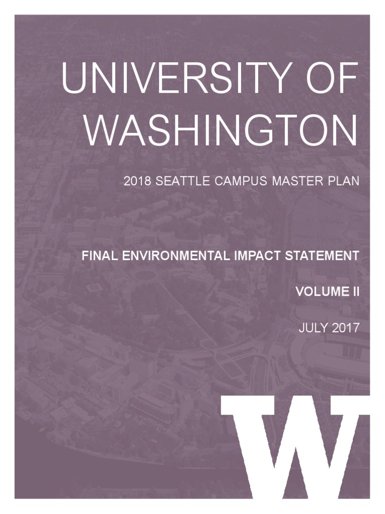 s been prepared in compliance with the State Environmental Policy Act (SEPA) of 1971 (Chapter 43.21C, Revised Code of Washington); the SEPA Rules, effective April 4, 1984, as amended (Chapter 197-11, Washington Administrative Code); and rules adopted by the University of Washington implementing SEPA (478-324 WAC). Preparation of this FEIS is the responsibility of the University's Capital Planning and Development Office. The Capital Planning and Development Office and the University's SEPA Advisory Committee have determined that this document has been prepared in a responsible manner using appropriate methodology and they have directed the areas of research and analysis that were undertaken in preparation of this FEIS and the Draft EIS (DEIS). This document is not an authorization for an action, nor does it constitute a decision or a recommendation for an action; in its final form, it will accompany the