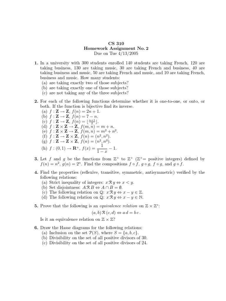 3. Let f and g be the functions from Z+ to Z+ (Z+ = positive integers) defined by