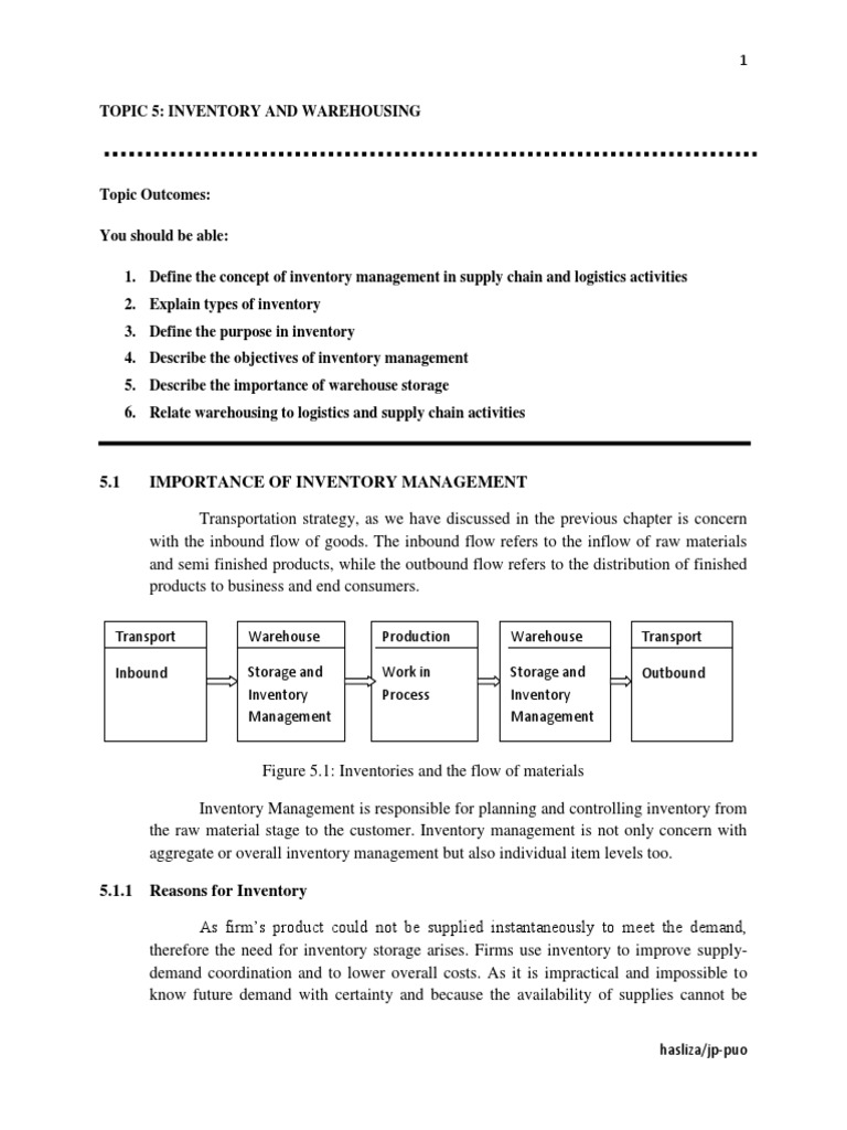 TOPIC 5: INVENTORY AND WAREHOUSING