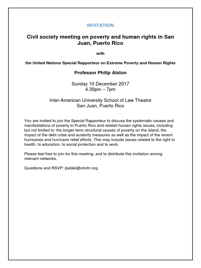 Save UN Special Rapporteur on Poverty meeting in San Ju... For Later