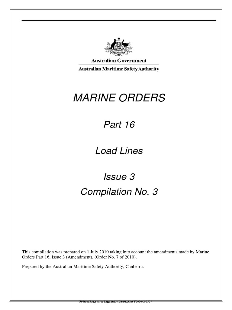 Marine Orders Part 16, Issue 3 (in force under the Navigation Act 1912) as shown in this compilation