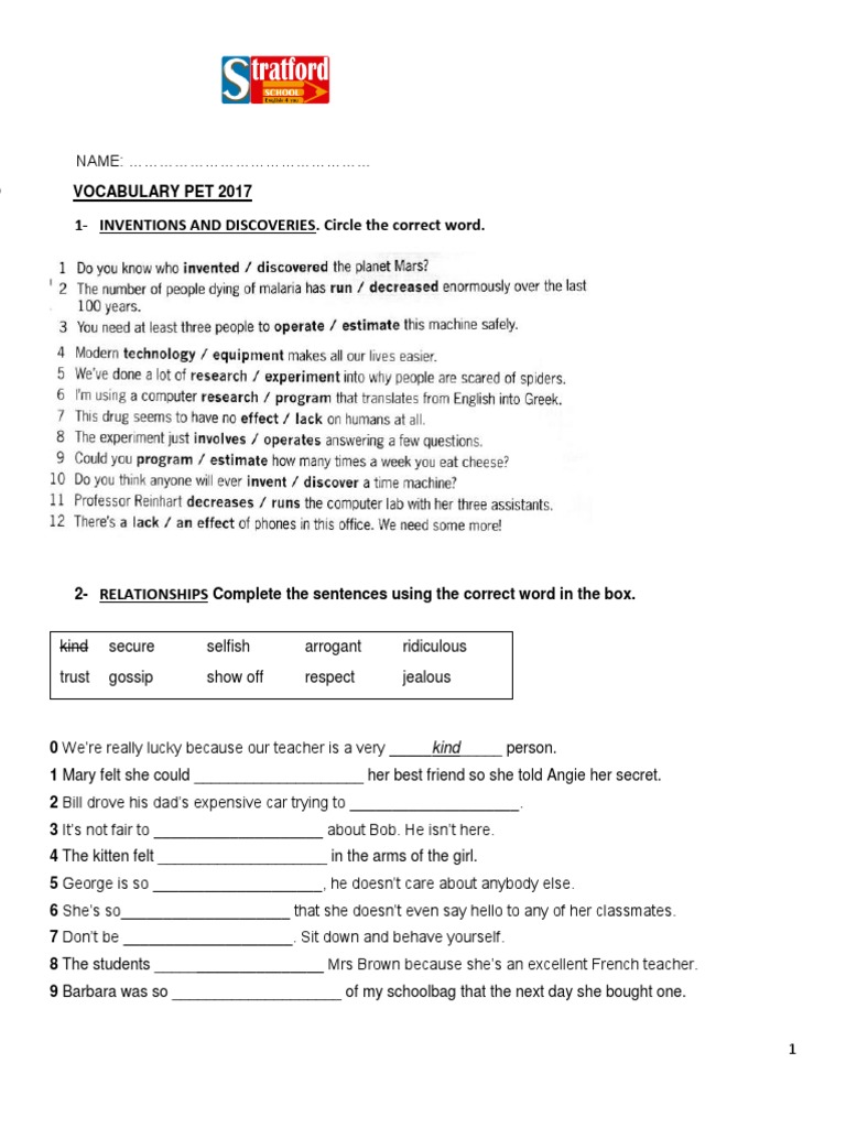 O VOCABULARY PET 2017