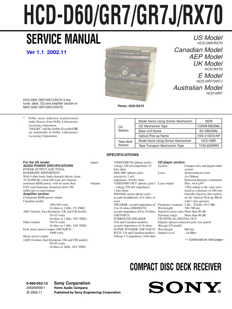MHC-D60/ GR7/GR7J/RX70. Photo: HCD-RX70