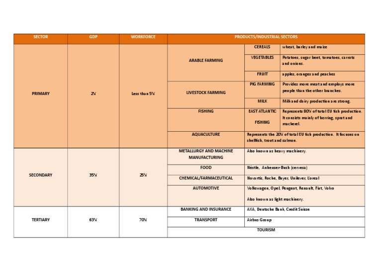 SECTOR GDP WORKFORCE PRODUCTS/INDUSTRIAL SECTORS