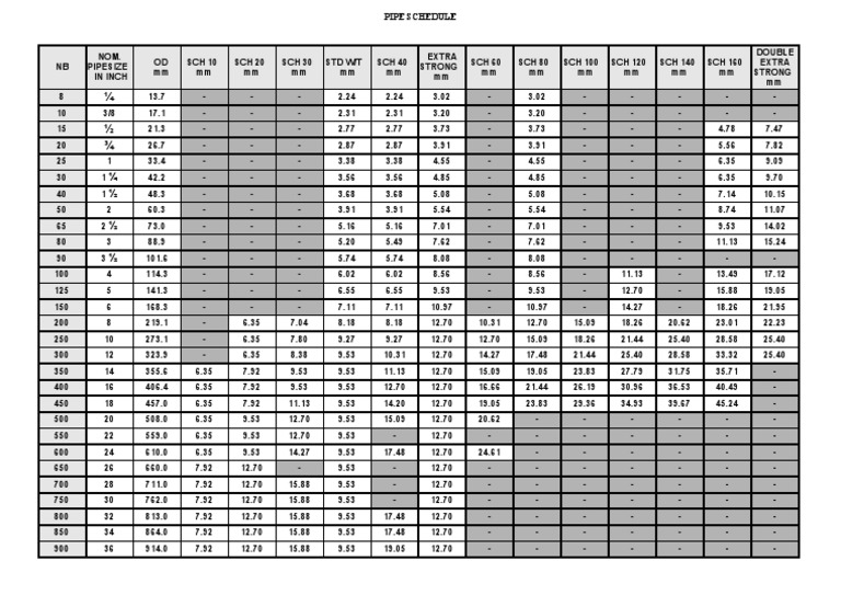 PIPE SCHEDULE