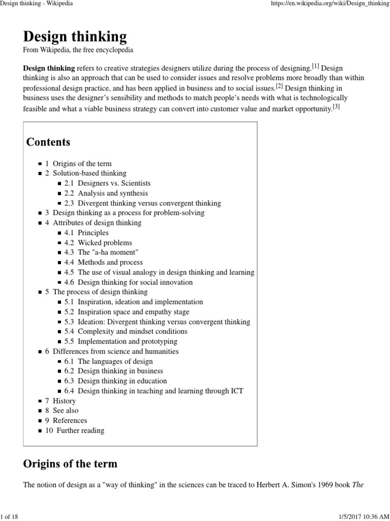 professional design practice, and has been applied in business and to social issues.[2] Design thinking in