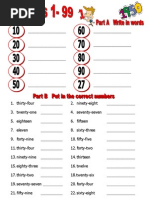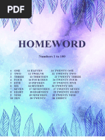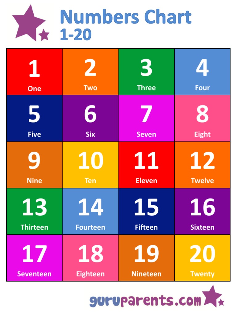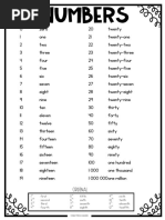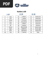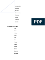 This document contains 20 numbered items from One to Twenty in 4 sections of 5 items each. The document lists a series of numbers in a structured format across 4 sections with 5 items in each section numbered consecutively from 1 to 20.