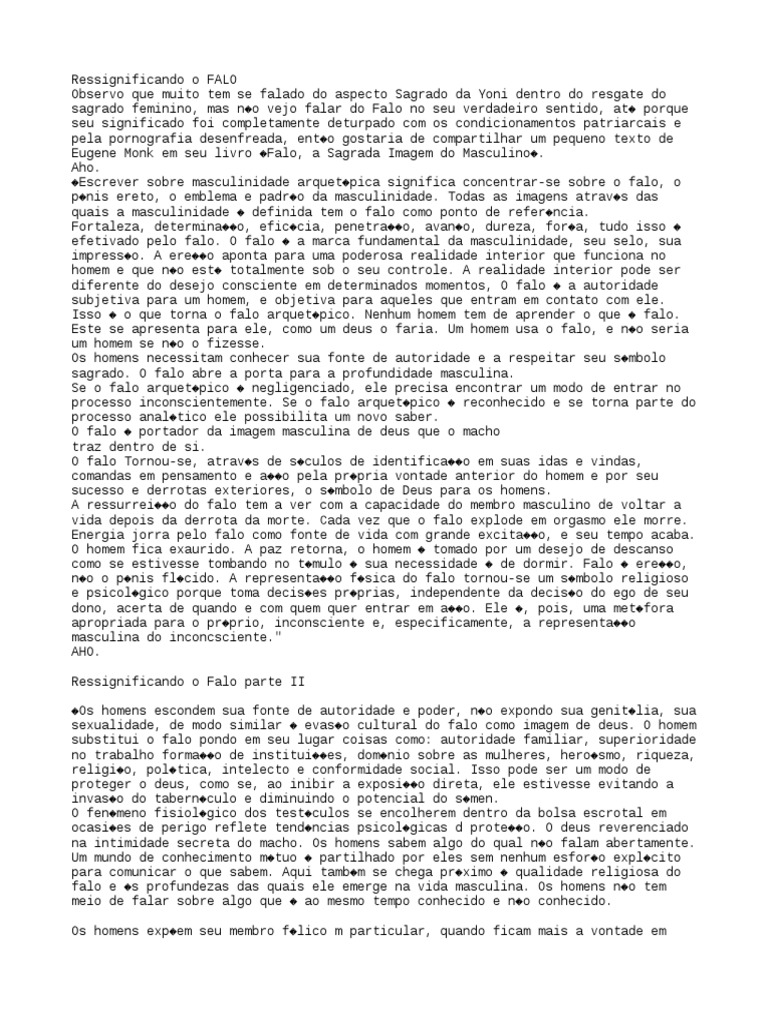 sagrado feminino, mas no vejo falar do Falo no seu verdadeiro sentido, at porque