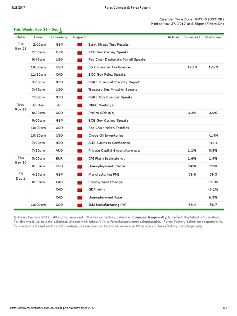 11/28/2017 Forex Calendar @ Forex Factory