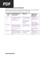 Discuss the general behavioural characteristics of all the children in your class with