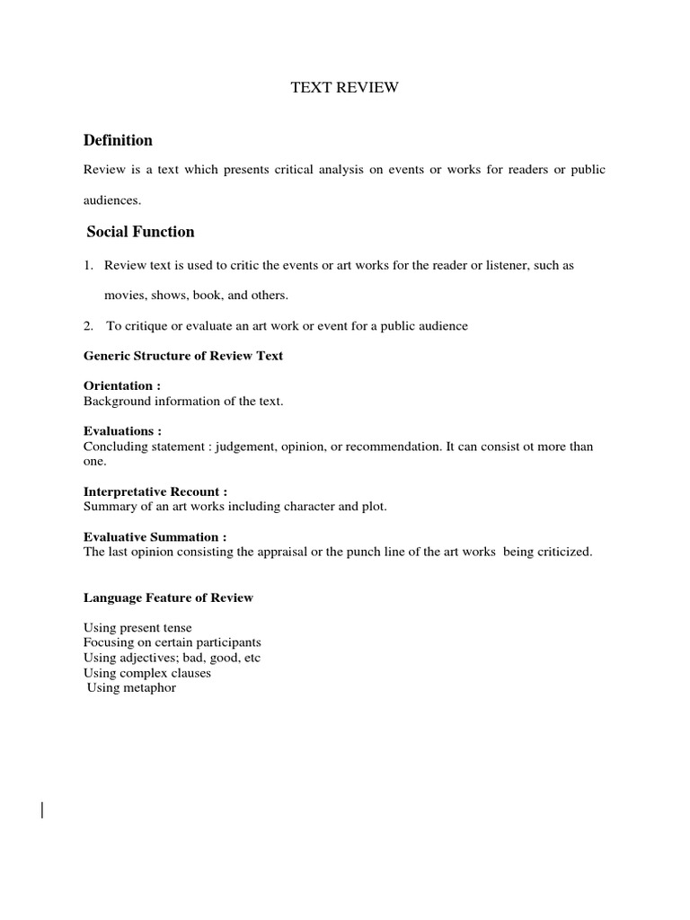 1. Review text is used to critic the events or art works for the reader or listener, such as