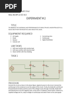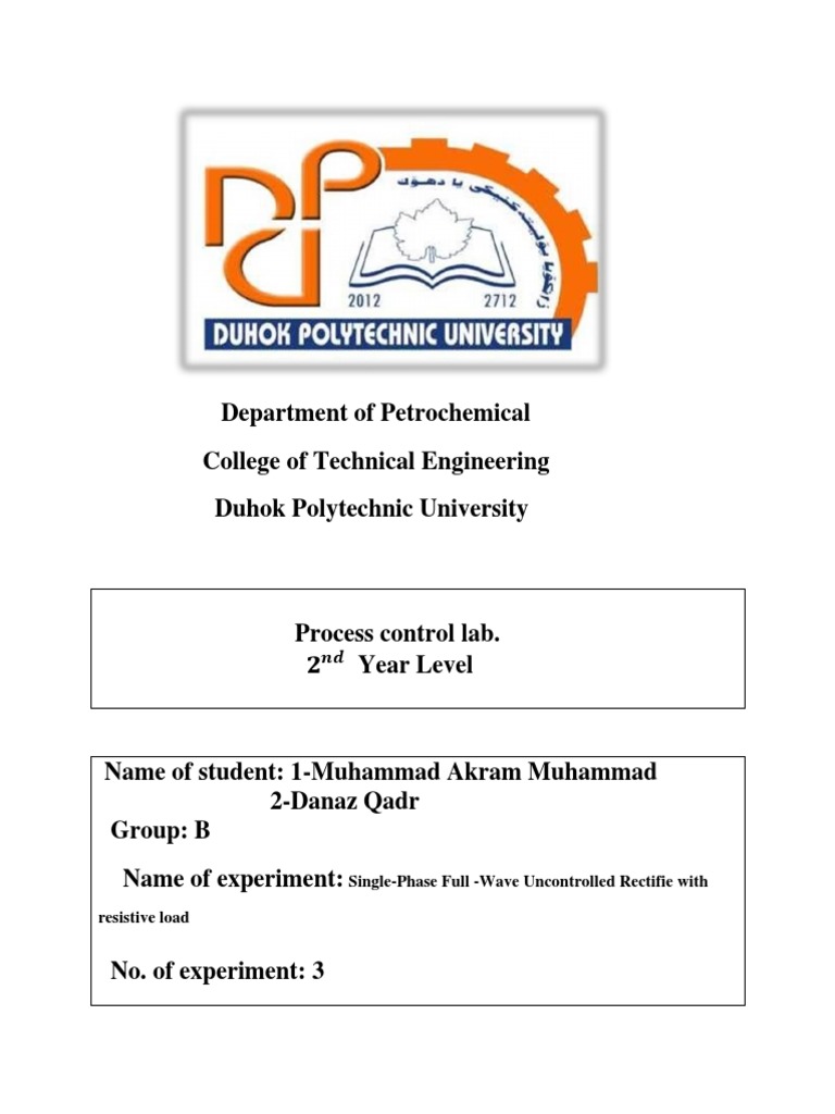 Name of experiment: Single-Phase Full -Wave Uncontrolled Rectifie with