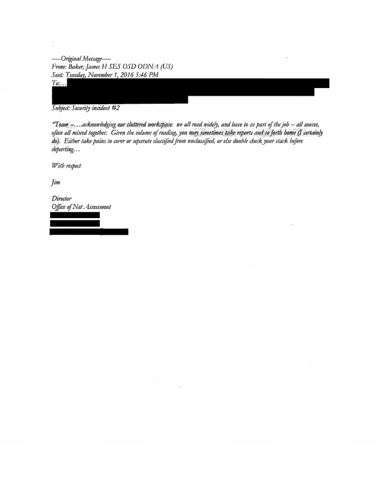 Email November 1, 2016 to ONA Staff on taking home documents