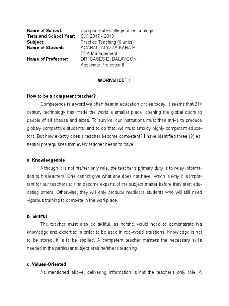 tors. But how exactly does a teacher become competent? I have identified three (3) es-