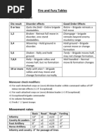 Notes: Imp=Impassable, * Cavalry may not cross man height walls o r fences