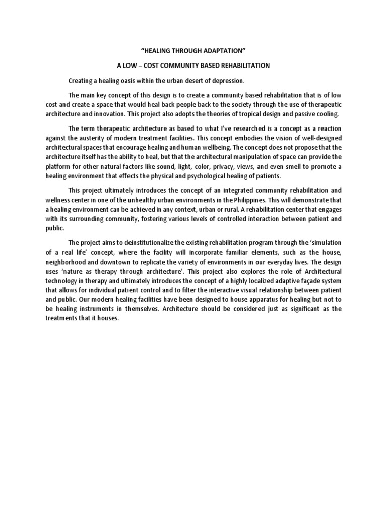 The main key concept of this design is to create a community based rehabilitation that is of low