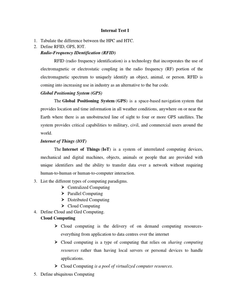 2. Define RFID, GPS, IOT.