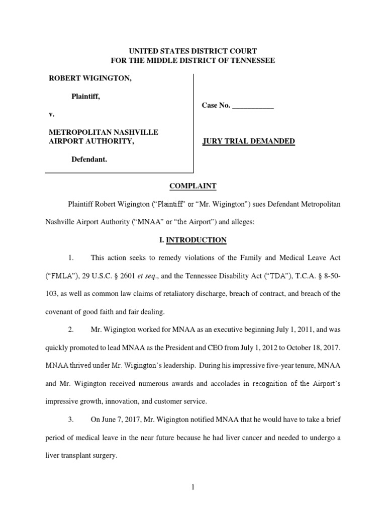 4. Shortly after Mr. Wigington informed MNAA that he needed to take leave, MNAA