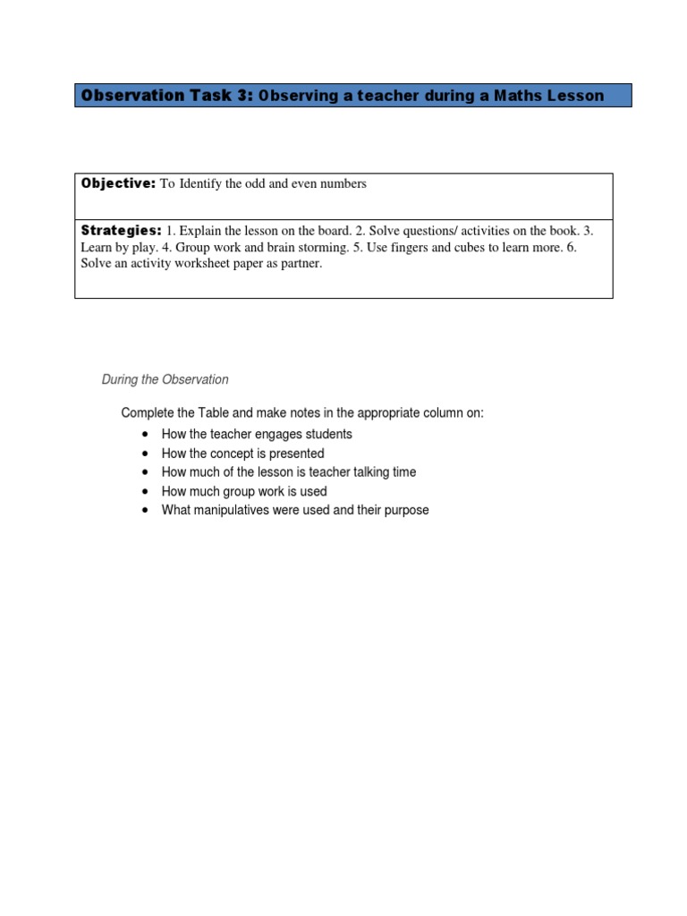 Observation Task 3: Observing a teacher during a Maths Lesson