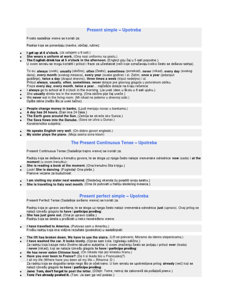To su: always (uvek), usually (obino), often (esto), sometimes (ponekad), never (nikad), every day (svakog