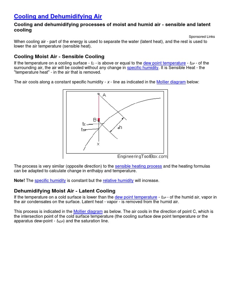 Cooling and dehumidifying processes of moist and humid air - sensible and latent