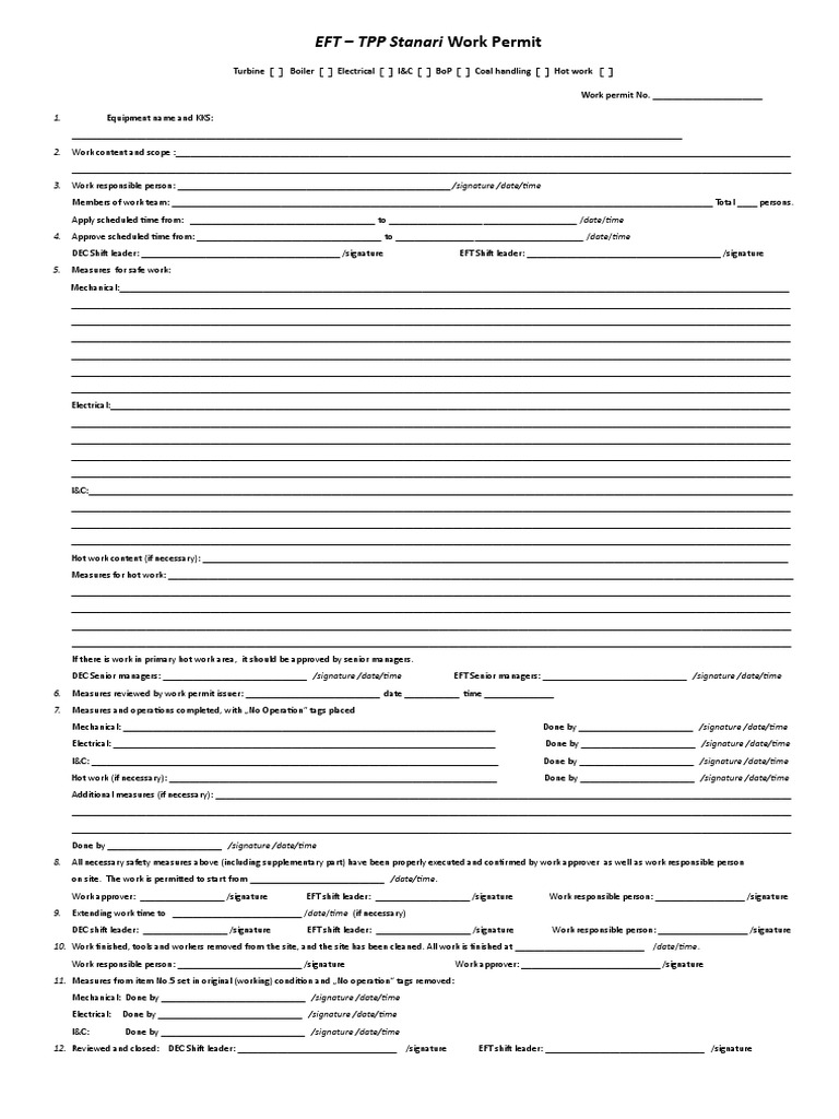 Work approver: _________________ /signature EFT shift leader: ___________________ /signature Work responsible person: __________________ /signature