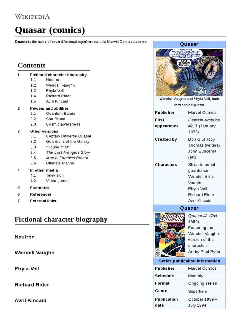 Quasar is the name of severalfictional superheroes in the Marvel Comics universe.