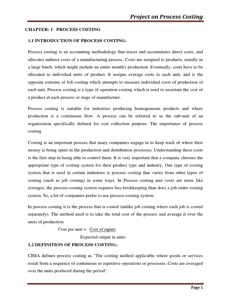 1.1 INTRODUCTION OF PROCESS COSTING: