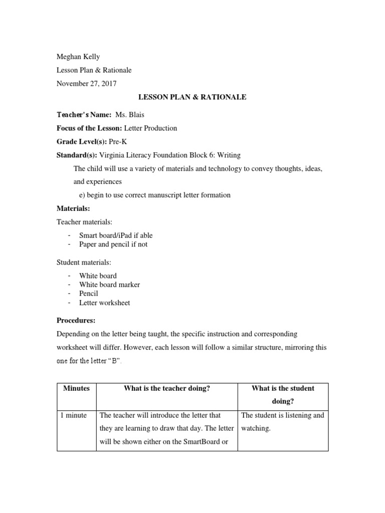 Lesson Plan & Rationale