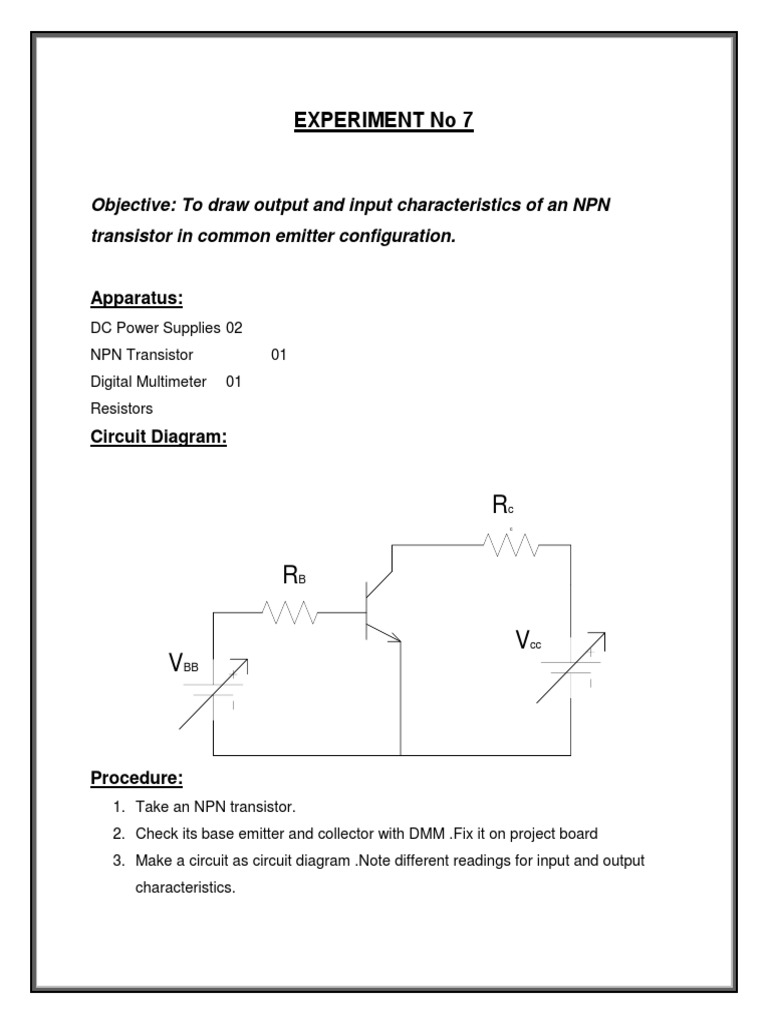 Objective: To draw output and input characteristics of an NPN