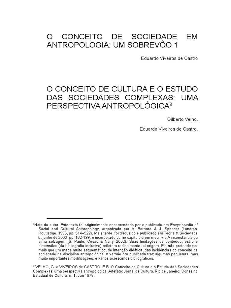 2VELHO, G. e VIVEIROS de CASTRO, E.B. O Conceito de Cultura e o Estudo das Sociedades