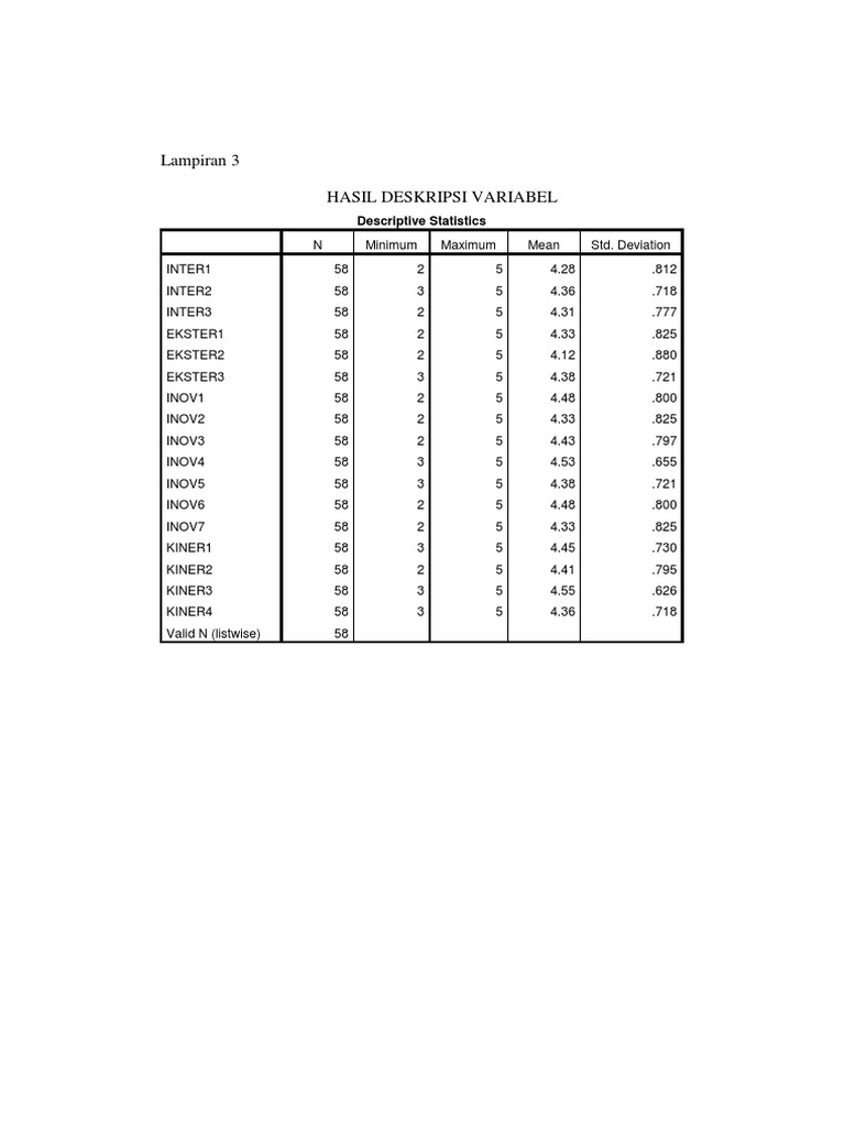HASIL DESKRIPSI VARIABEL