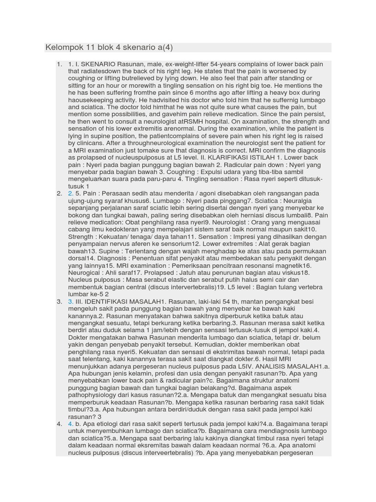 1. 1. I. SKENARIO Rasunan, male, ex-weight-lifter 54-years complains of lower back pain