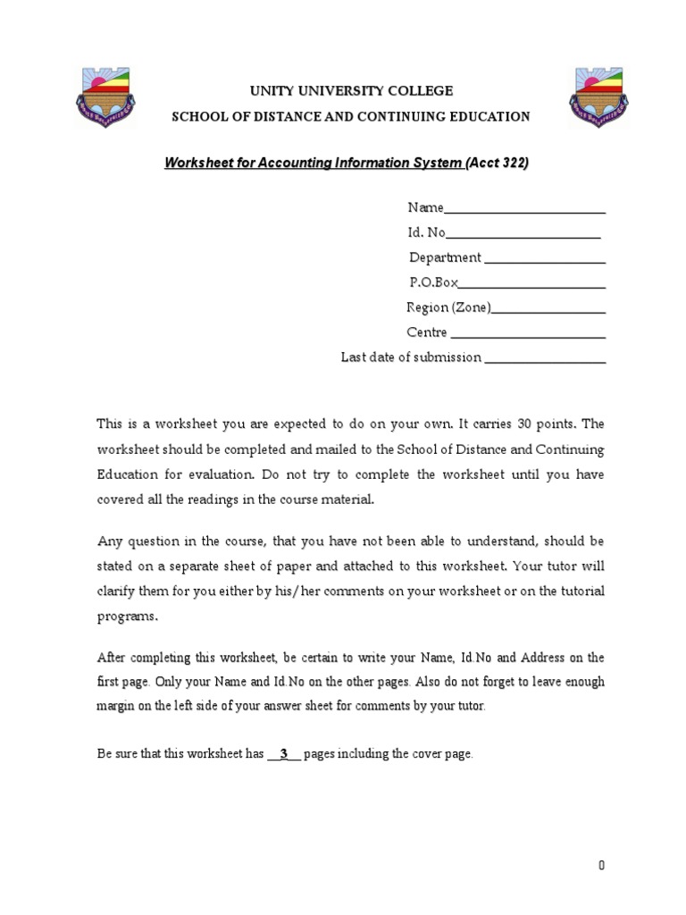 Worksheet for Accounting Information System (Acct 322)