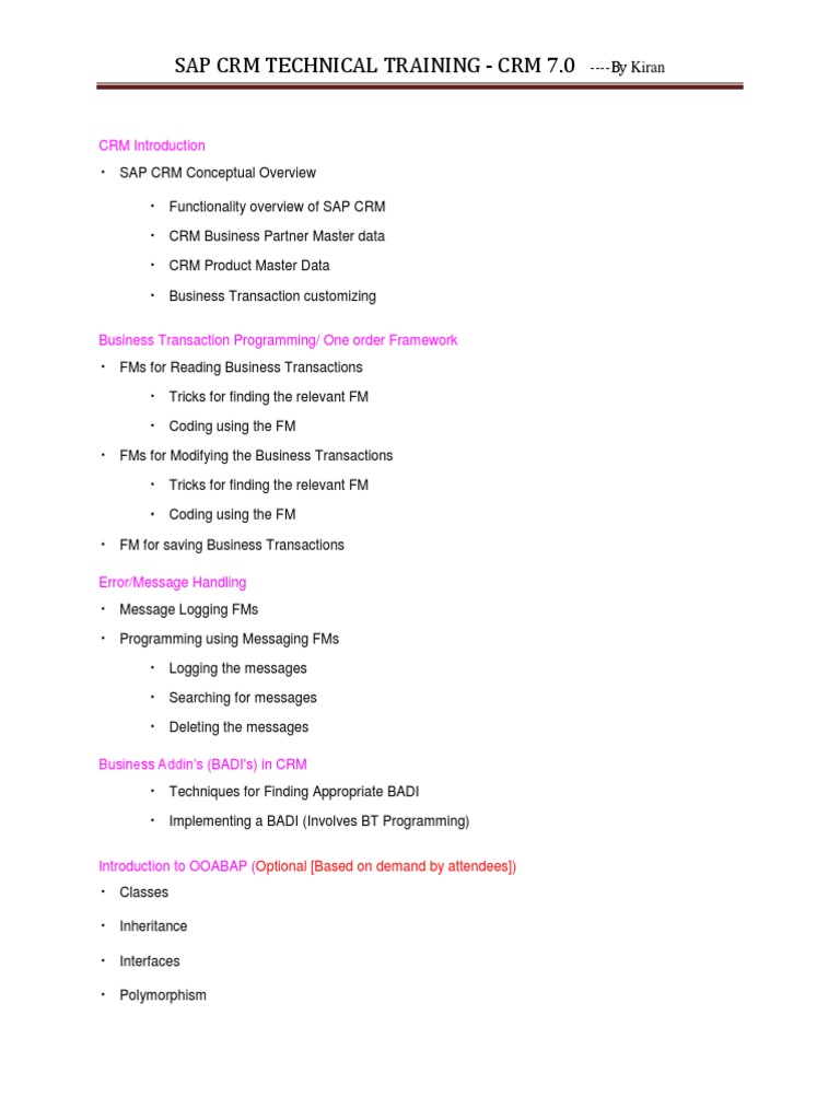 SAP CRM TECHNICAL TRAINING - CRM 7.0 ----By Kiran